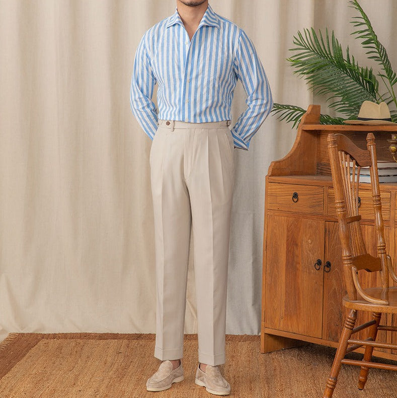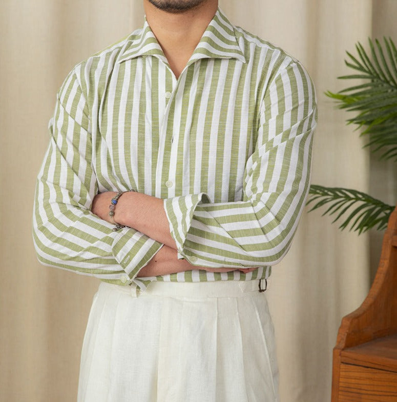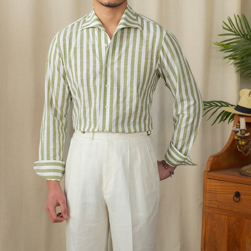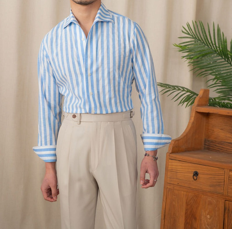 Bawełniana koszula w paski z długim rękawem to doskonały wybór dla osób ceniących elegancję i wygodę. Wykonana z luksusowej mieszanki bawełny, ta koszula łączy w sobie klasyczny styl z nowoczesnym podejściem do mody.