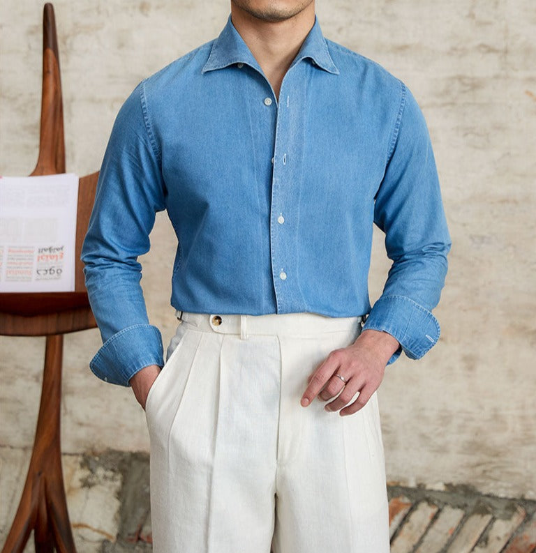 Denimowa koszula z długim rękawem to must-have w każdej eleganckiej garderobie. Wykonana z miękkiej bawełny, zapewnia komfort noszenia i stylowy wygląd.