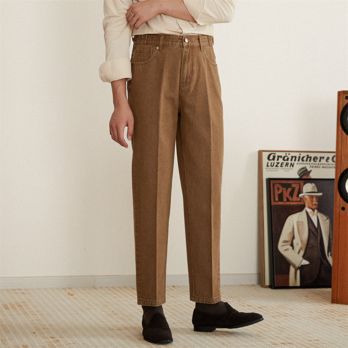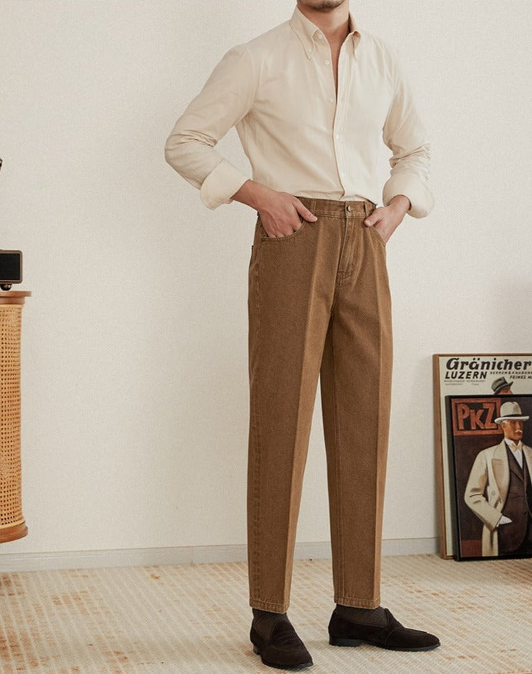 Jeansowe spodnie z zakładką to must-have w każdej garderobie, łączące elegancję z codziennym komfortem. Wykonane z lekkiej i przewiewnej bawełny, te spodnie są idealnym wyborem na każdą okazję.