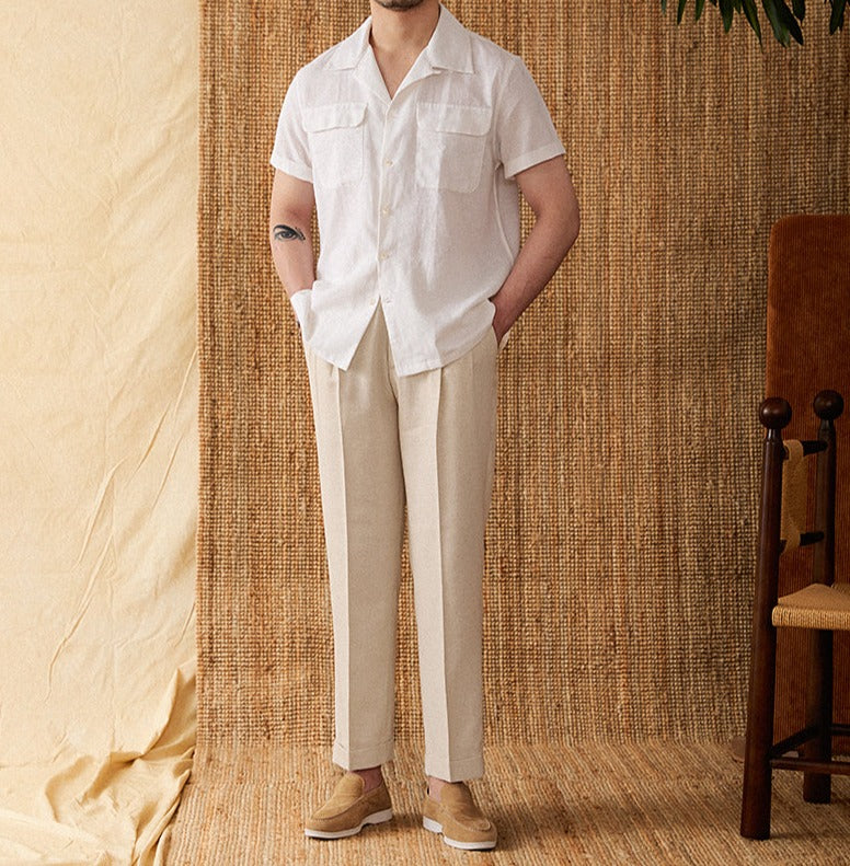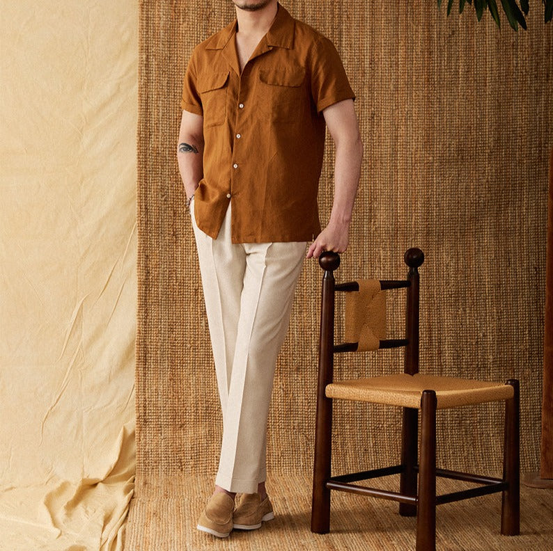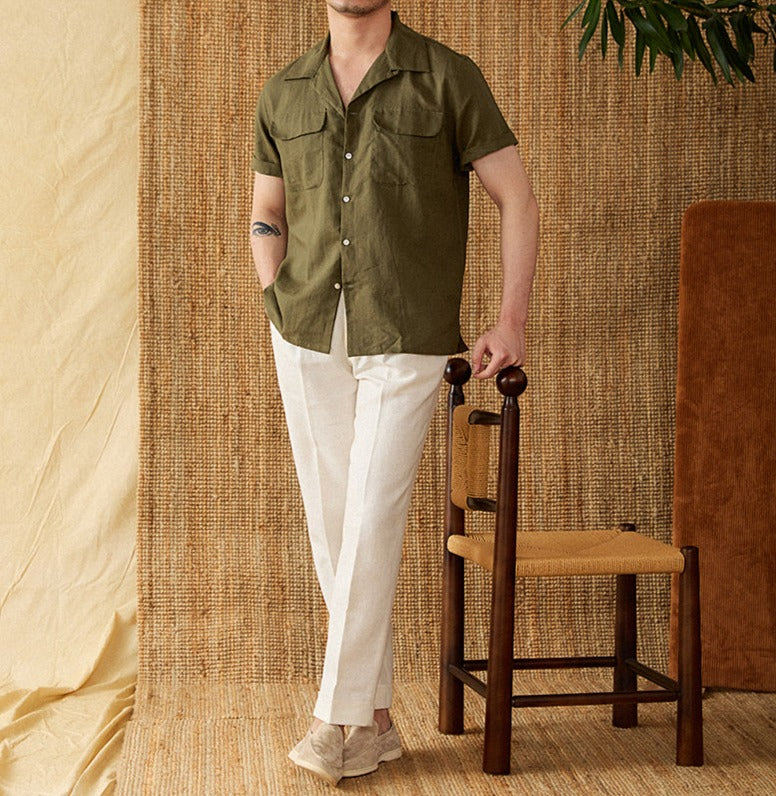 Lniana koszula z krótkim rękawem to idealny wybór na letnie dni, łączący elegancję i wygodę. Wykonana z wysokiej jakości mieszanki lnu i bawełny, zapewnia doskonałą oddychalność oraz komfort noszenia.