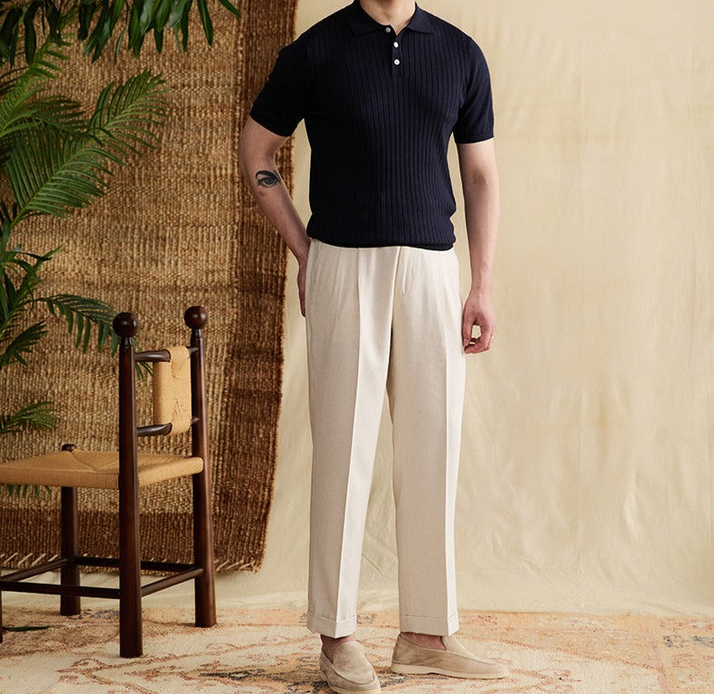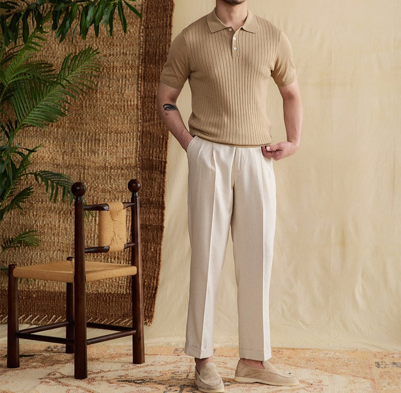 Polo męskie prążkowane z guzikami to doskonały wybór dla każdego mężczyzny, który ceni sobie elegancję i wygodę. Wykonane z luksusowej mieszanki bawełny, to unikalne polo z prążkowanym przodem dodaje klasy każdemu strojowi.